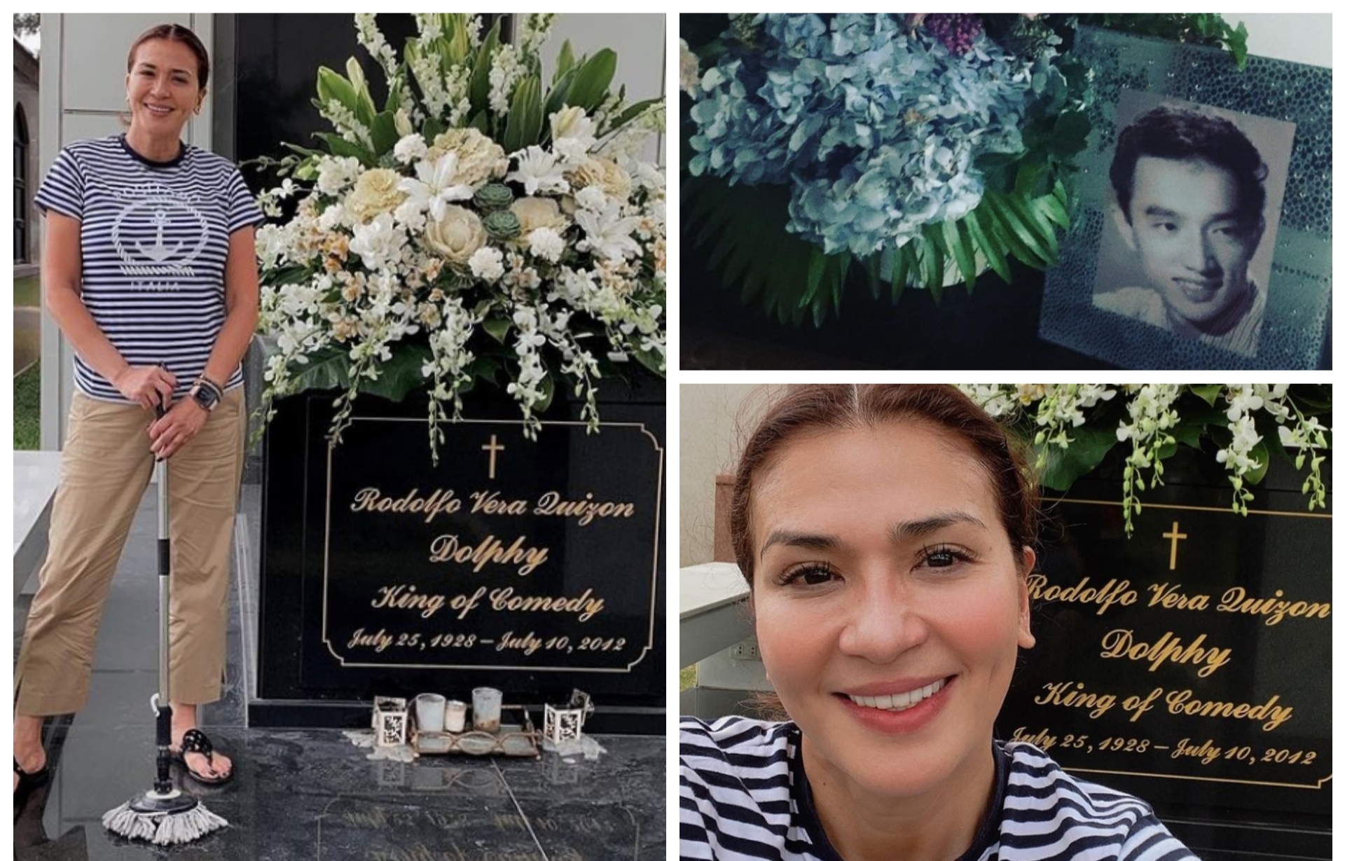 Makikita sa isang photo na may hawak pang mop ang Divine Diva na mukhang kinunan nga pagkatapos niyang maglinis sa libingan ni Mang Dolphy katuwang ang kanyang personal driver.